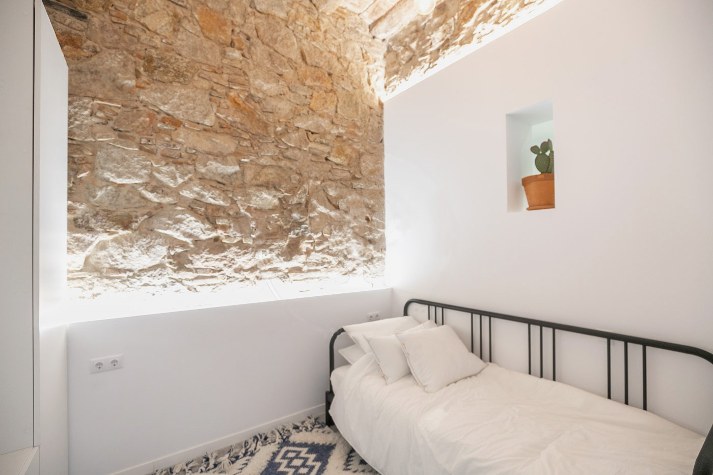 We found for him this gracious atelier that was recently renovated by Artemis assets. We have put a lot of emphasis to maintain the traditional elements of Catalan architecture such as wooden beams, the brick vault, stone walls & the high ceiling. Perfect flat to be rented to expats.